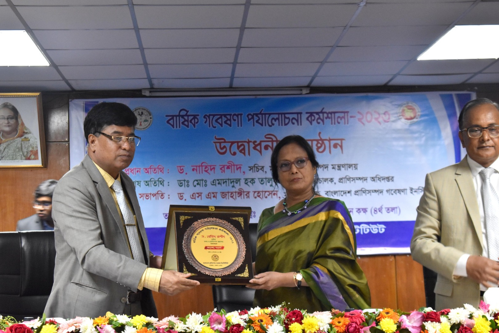 বাংলাদেশ প্রাণিসম্পদ গবেষণা ইনস্টিটিউটের মহাপরিচালক ড. এস এম জাহাঙ্গীর হোসেন সভাপতির বক্তব্যে বলেন, বিএলআরআই সব সময় সকলের মতামত নিয়ে গবেষণা কার্যক্রম হাতে নেওয়ার চেষ্টা করে। বিএলআরআই বর্তমানে আবহাওয়া ও জলবায়ু পরিবর্তনের সাথে খাপ খাইয়ে নিতে পারবে এমন নতুন নতুন জাত উদ্ভাবনের কাজ করছে। খামারের খরচ কমানো, খাদ্য ব্যবস্থায় বিকল্প পুষ্টির উৎস খুঁজে বের করতে কাজ করে চলেছে। সাম্প্রতিক সময়ে আলোচিত বিভিন্ন সংক্রামক রোগের টিকা উদ্ভাবনের কাজ করছেন।